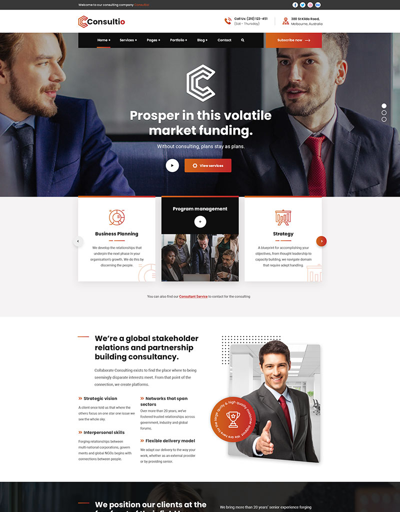 Consultio is a Consulting, Finance & Business Theme. It is a clean and modern Business design. You can use it for any kind website like consultancy, Adviser, Business, Consultant, Corporate, Finance, Financiall.