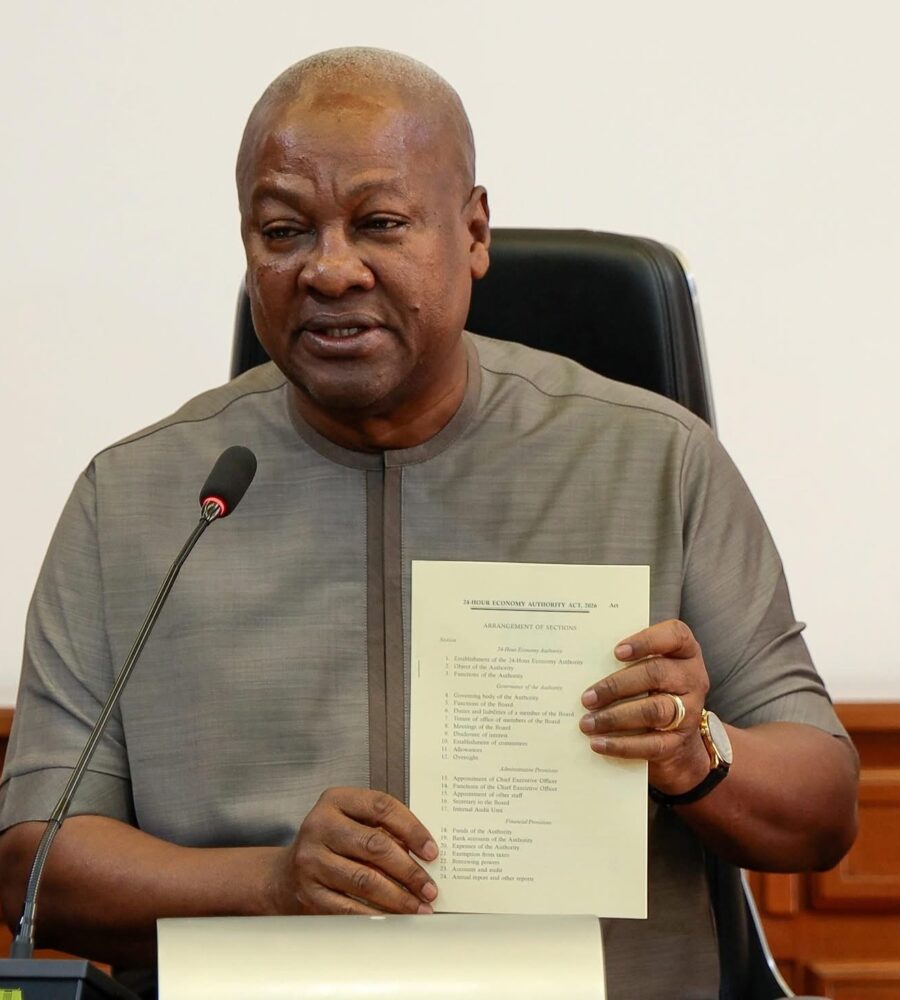 PresidentJohn Dramani Mahama on Thursday, assented to the 24-Hour Economy Authority Bill, 2025, in a brief ceremony before the 13th cabinet meeting.