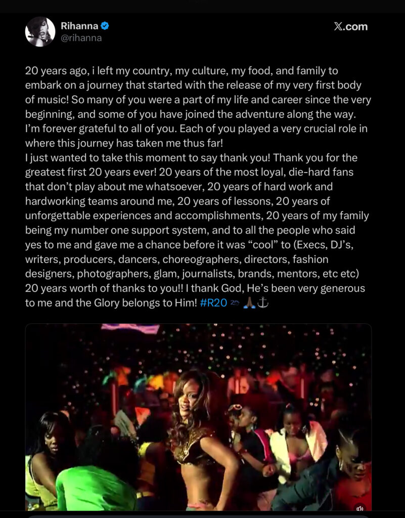 The 20th anniversary of Rihanna’s career is not just a celebration of her past achievements but also a reminder of her ongoing influence in the music industry and beyond. As she continues to break barriers and inspire generations, one thing is certain: Rihanna’s legacy will endure for years to come, and her fans will be there every step of the way, cheering her on as she embarks on the next chapter of her incredible journey. Here’s to 20 years of Rihanna—may her future be as bright and impactful as her remarkable past!